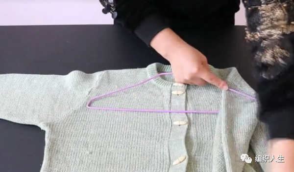 1、把晾衣架放在攤平的毛衣的衣領(lǐng)處。