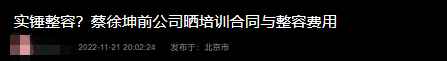 11月21日,娛樂圈又熱鬧了起來,除了汪小菲和大S的離婚風(fēng)波外,“蔡徐坤整容”這個詞條也迅速登上熱搜,引發(fā)網(wǎng)友熱議。