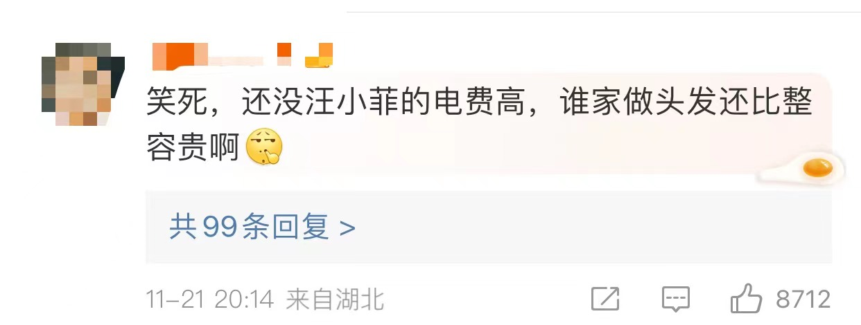 還有網(wǎng)友結(jié)合“汪小菲不想再給這個家付電費(fèi)了”新聞一起看,笑稱蔡徐坤等人的整容費(fèi)用還沒汪小菲交的電費(fèi)高。