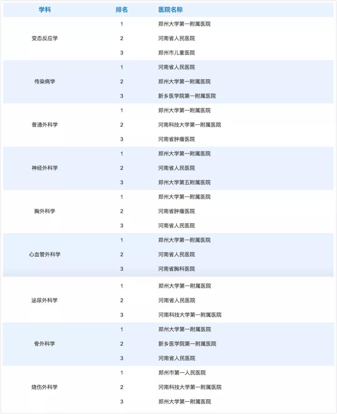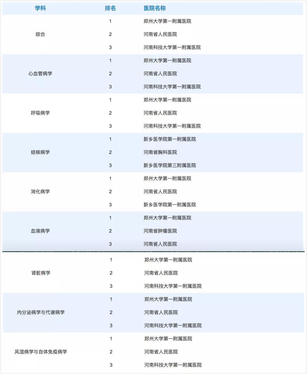 河南醫(yī)院學科排行