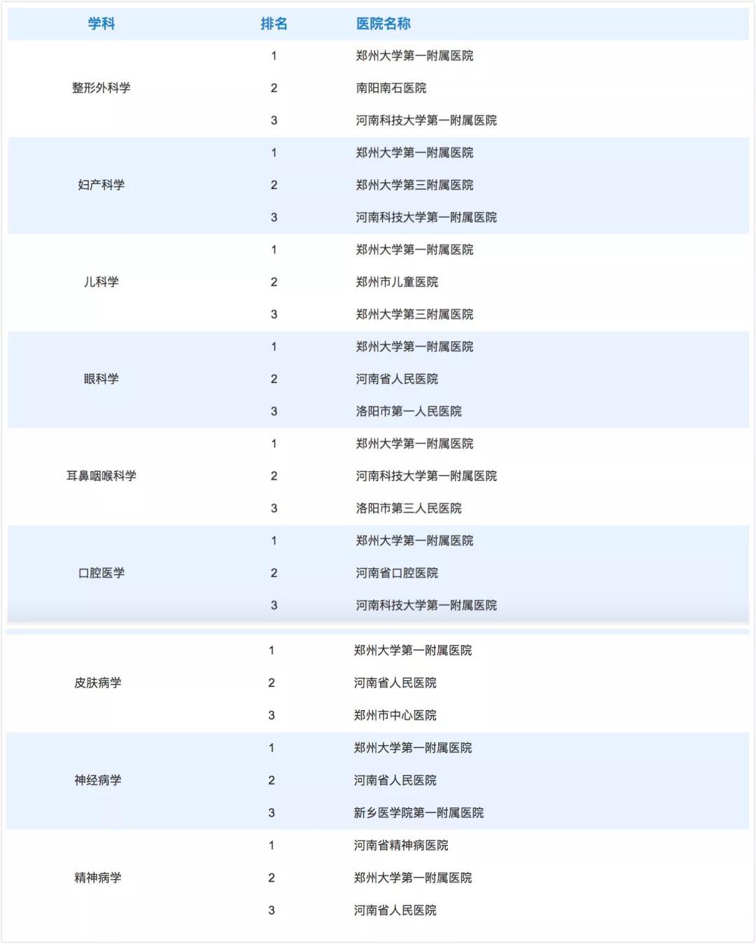 河南省29個學科哪些醫(yī)院是前三甲?