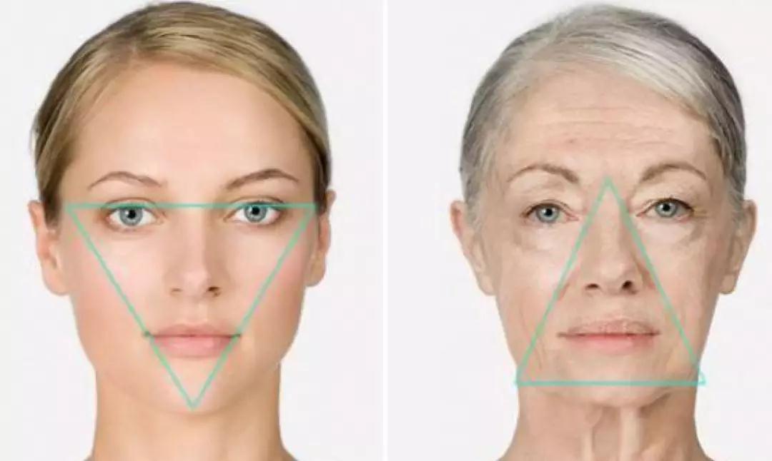 成熟期和衰老期相比,面部輪廓會(huì)由一個(gè)倒三角形變成正三角形。