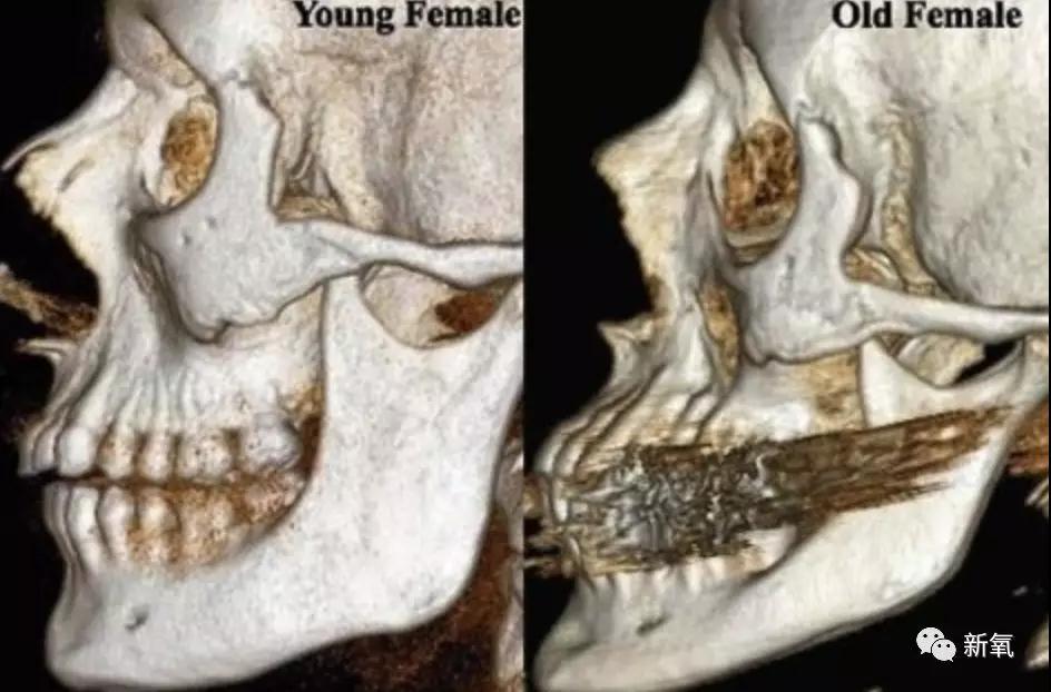 除了上述的皮膚和軟組織變化,衰老的過程中,我們的骨骼也在發(fā)生變化,美國羅切斯特大學(xué)醫(yī)學(xué)中心(University of Rochester Medical Center)的研究人員發(fā)現(xiàn)人類在衰老過程中,顴骨和鼻骨開口處向后萎縮,下頜骨在長度和高度上也會(huì)萎縮,讓臉的下半部分失去支撐,因此臉會(huì)向下垮。