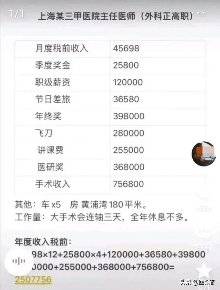 上海三甲正高職主任醫(yī)師亮出工資單,年薪250萬元太高了?