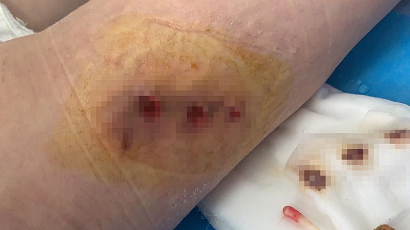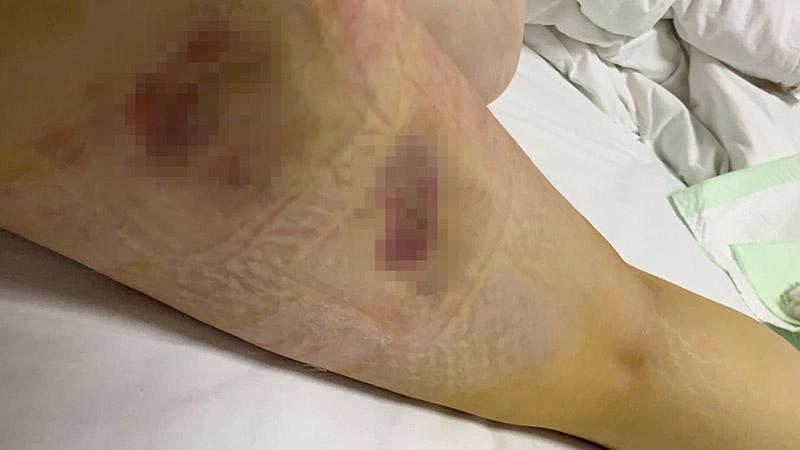 小夢(mèng)5月19日被轉(zhuǎn)至鄭州人民醫(yī)院整形外科調(diào)節(jié),“住院期間一共割了十個(gè)口,9月上旬出院,直到現(xiàn)在都未痊愈,一走路左大腿就疼,有時(shí)候還會(huì)流出黃色透明的液體?!毙?mèng)說。