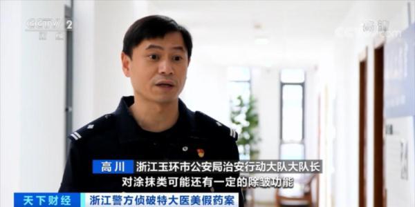 浙江玉環(huán)市公安局治安行動大隊大隊長 高川: 因為本身化妝品只適合涂抹,對涂抹類可能還有一定的除皺功能,但是注射的話就會出現(xiàn)一系列的反應,比如說皮膚出現(xiàn)部分紅腫,或者皮膚的肌肉會有一定的影響。