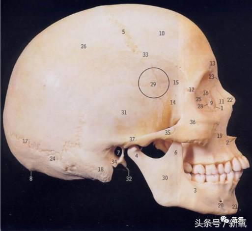 徒手整形有一個(gè)說法:“只要手法到位,我們的骨骼是可以改變的”。科普需要,迷死氧先來放一個(gè)頭骨圖。