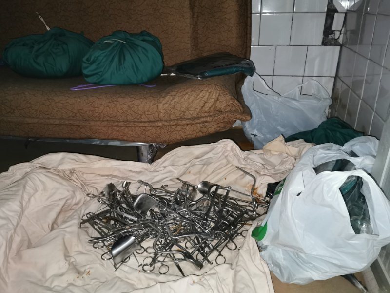 2019年12月14日,手術(shù)場地被新河警方查抄后遺落的器械。新京報記者 李英強 攝