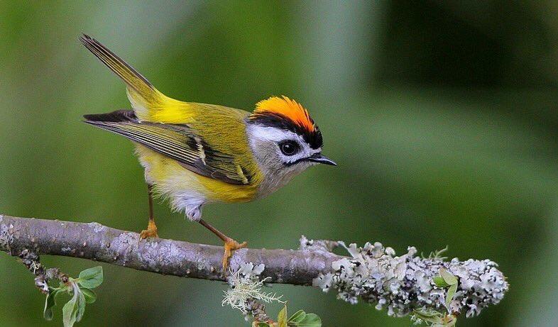 之后,在小路邊的黑刺李中間,我看到一只黑色的小生物:一只小鳥,藏在交錯的樹枝之間,幾乎看不出身形。它停留在一個狹小的空隙里,兩三枝細(xì)樹枝就可以蓋住。小鳥來回飛著,顯然正在捕食小昆蟲,絲毫沒有注意到我,也沒有被我打擾到。我看到它身著深橄欖綠色的羽毛,頭上有細(xì)黃色條紋。這是一只戴菊,可能是今年新生的幼鳥。