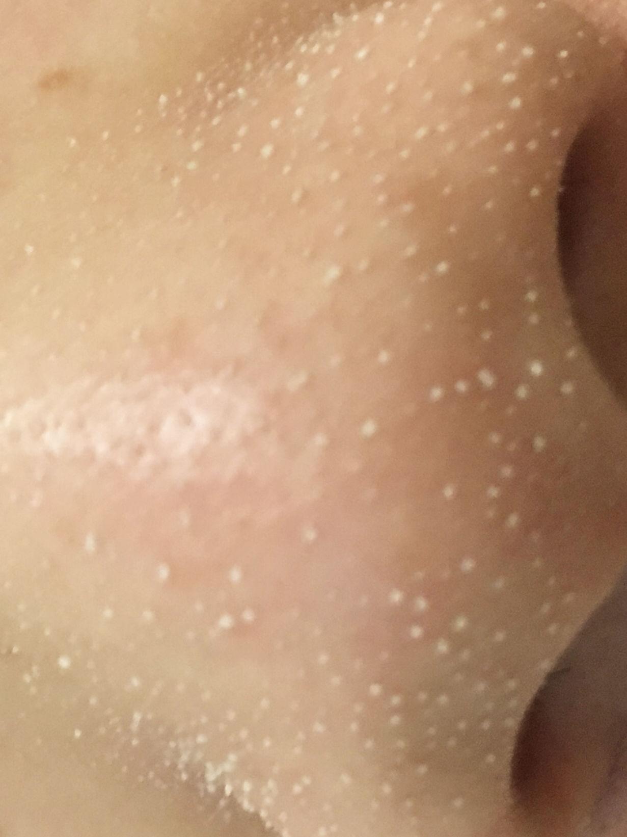 你基礎(chǔ)白色的油脂粒,這就是黑頭,雖然是白色的,但是真的是黑頭哦