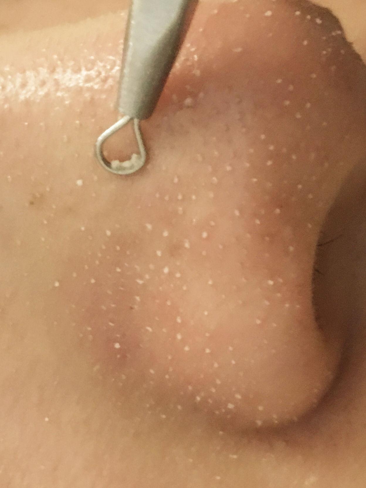 浮出的黑頭是這個(gè)樣子滴,軟踏踏的在毛孔口