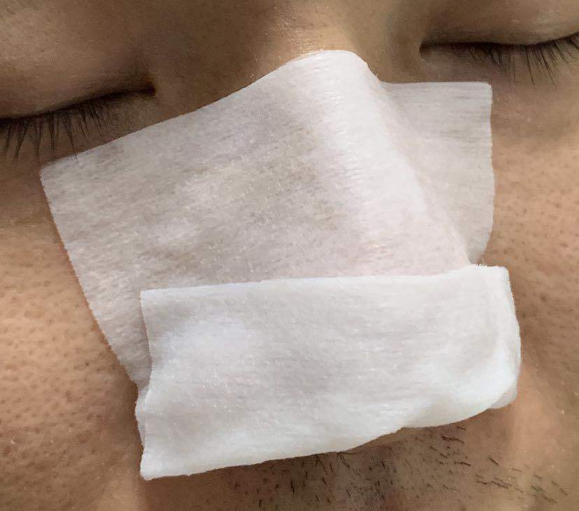 濕透的棉片貼在鼻子上,等待十分鐘左右