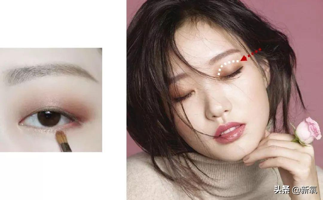 就眼妝而言,比起線條感,更適合單眼皮或者小內(nèi)雙的畫法是色彩的暈染感。