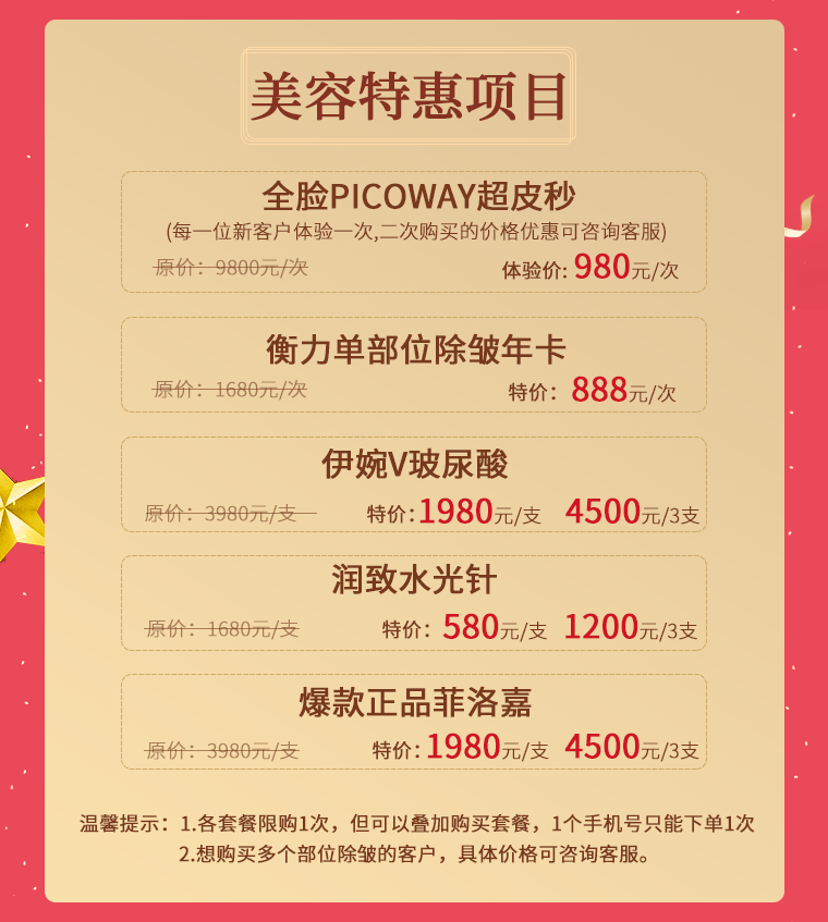 還有爆款/潤(rùn)致/v玻尿酸/單部分除皺年卡
