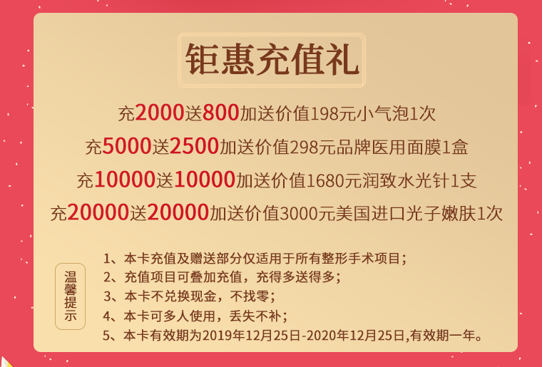 充得多送得多,充值卡適用于各種整形手術(shù),還加大力度贈(zèng)送小氣泡/醫(yī)美面膜//光子嫩膚,讓你成為老家靚的妹。