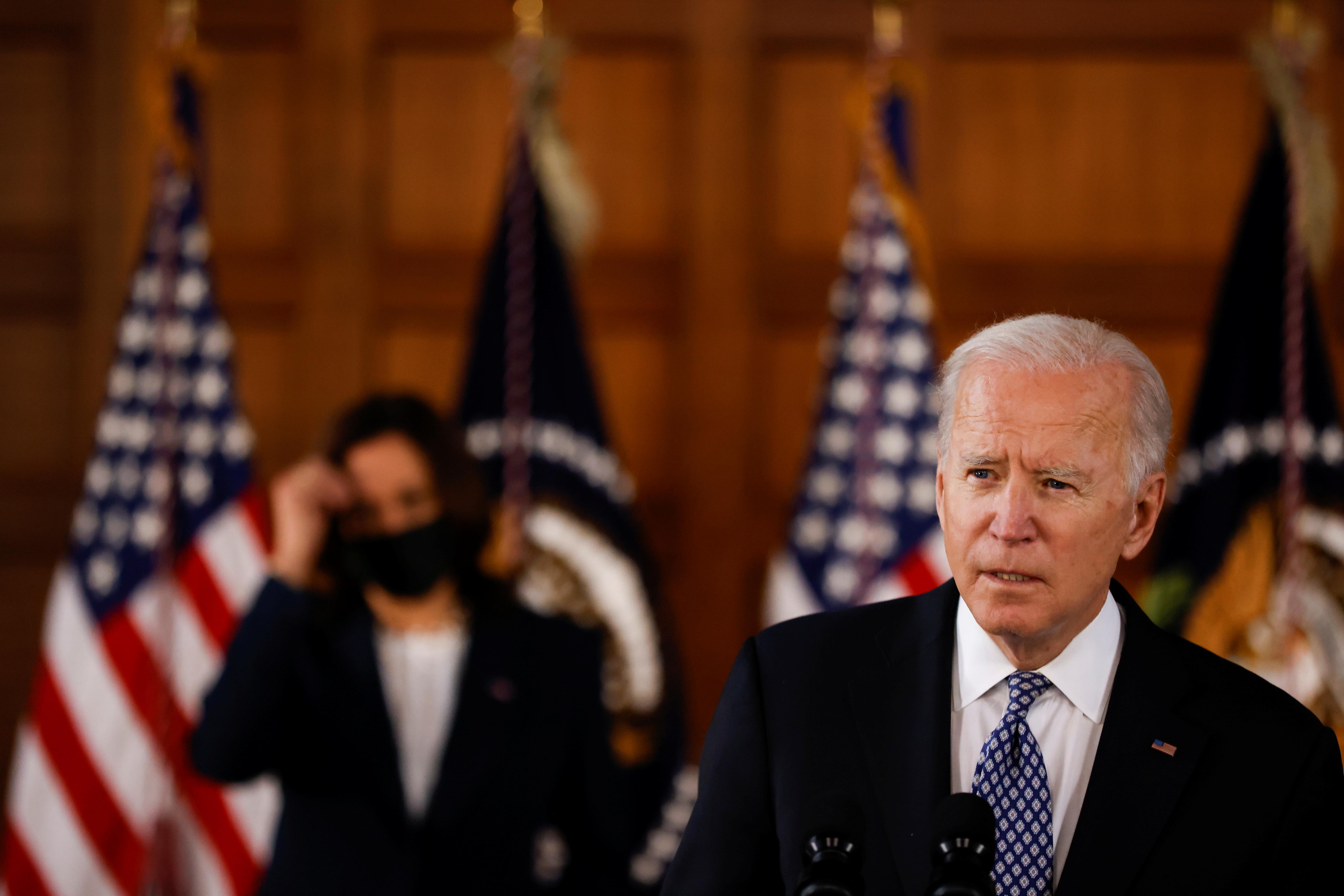 當(dāng)?shù)貢r間2021年3月19日,美國亞特蘭大,美國總統(tǒng)拜登就美國國內(nèi)種族主義言論以及針對亞太裔的仇恨行為等問題發(fā)表講話。圖/IC photo