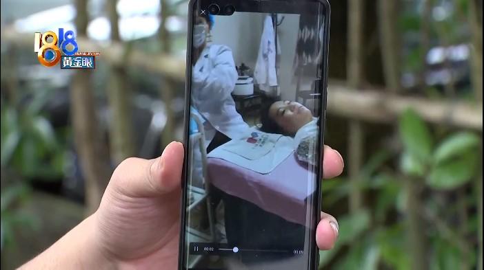 劉女士提供了一段視頻和幾張照片,視頻是當時做下巴填充的時候拍的,躺在床上的是劉女士,身穿白大褂,手里拿著注射器的是工作人員,也姓劉。