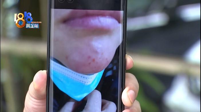 另外幾張照片中,可以看到劉女士的下巴紅腫。