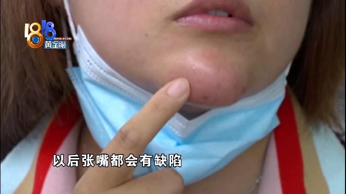 劉女士:“我前兩天去杭州的邵逸夫掛專家看的,專家說如果把這個東西取出來都會毀容的,以后張嘴都會有缺陷 (填充的是什么東西)我不知道,她拿不出成分?!?/p>