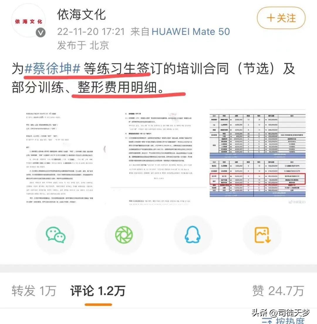 這個公司直接甩出合同截圖,標(biāo)題:蔡徐坤等練習(xí)生,在團(tuán)期間部分訓(xùn)練+整形費(fèi)用節(jié)選。