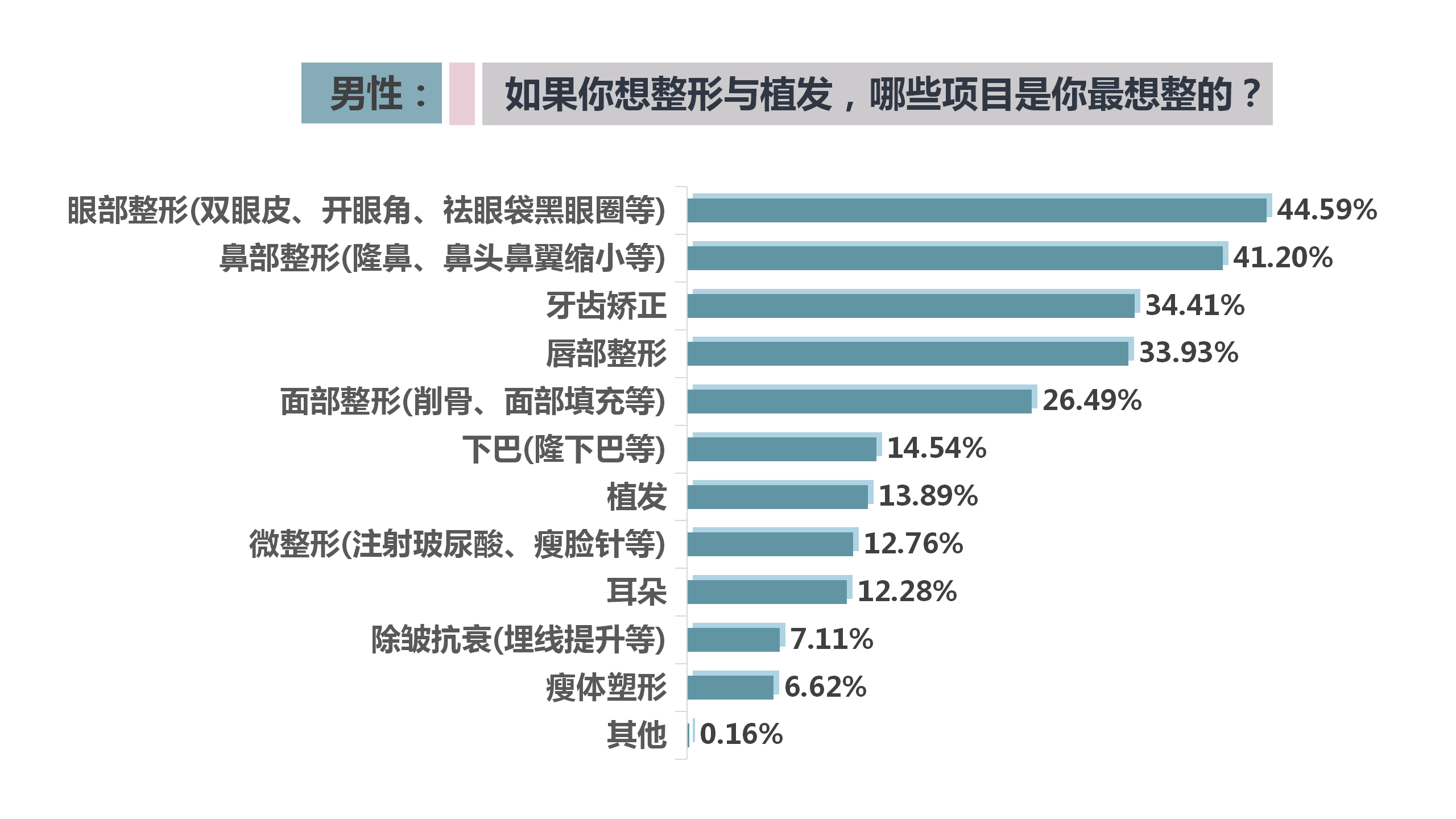 眼鼻項(xiàng)目受歡迎,三成男性可接受5000-10000元費(fèi)用