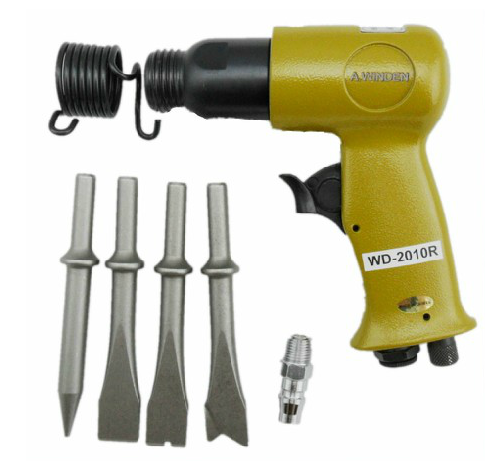 氣動鏨如圖23所示,是以壓縮空氣為動力的工具,可產(chǎn)生1800次/min的擊打頻率,配上不同類型的鏨頭,可以進行鏨割、鏟平、敲擊等各項任務(wù)。氣動鏨體積小,質(zhì)量輕,工作效率高、切割性能好;在不受限制的條件下,可以進行直線、曲線等切割,如圖24所示,但操作時振動和噪音比較大。還可以用氣動鏨來清除焊點。