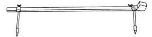 中心量規(guī)如圖42所示,可用來測量和診斷車架的變形損壞程度。比如對車輛進行翹曲檢查時,在兩個基本無損傷的地方懸掛兩個量規(guī),又在損傷區(qū)懸掛兩個量規(guī),參見圖43,正常情況下,這些量規(guī)應(yīng)平行,且中心在一條直線上。如檢查到不平行及中心銷錯位,就說明車輛已發(fā)生翹曲變形,可以據(jù)此測出損傷點與基準(zhǔn)線的差值。