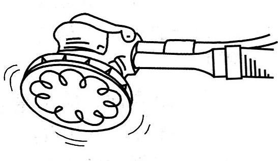 軌道式打磨機的打磨盤墊外形呈矩形,便于在工件表面上沿直線軌跡移動,整個打磨墊以小圓圈振動。如圖32所示,這種打磨機主要用于膩子的打磨。它可以根據(jù)工件表面的情況采用各種尺寸的打磨砂墊,以提率,軌跡直徑也可以進行改變。