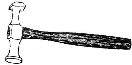 輕鐵錘如圖3所示,是一種用來修整鈑金件,使其大致回到原形的鈑金錘。它的手柄比較短,適合在操作空間比較狹窄的地方使用。