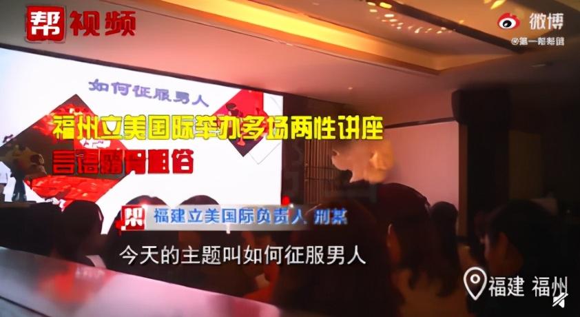 從媒體曝出的視頻可以看出,該機(jī)構(gòu)的負(fù)責(zé)人刑某正慷慨激昂地開展著兩性講座:激情的演講,瘋狂地扭擺,全程穿插著各種露骨粗俗的言論,而在場(chǎng)的絕大多數(shù)聽眾都是女性。
