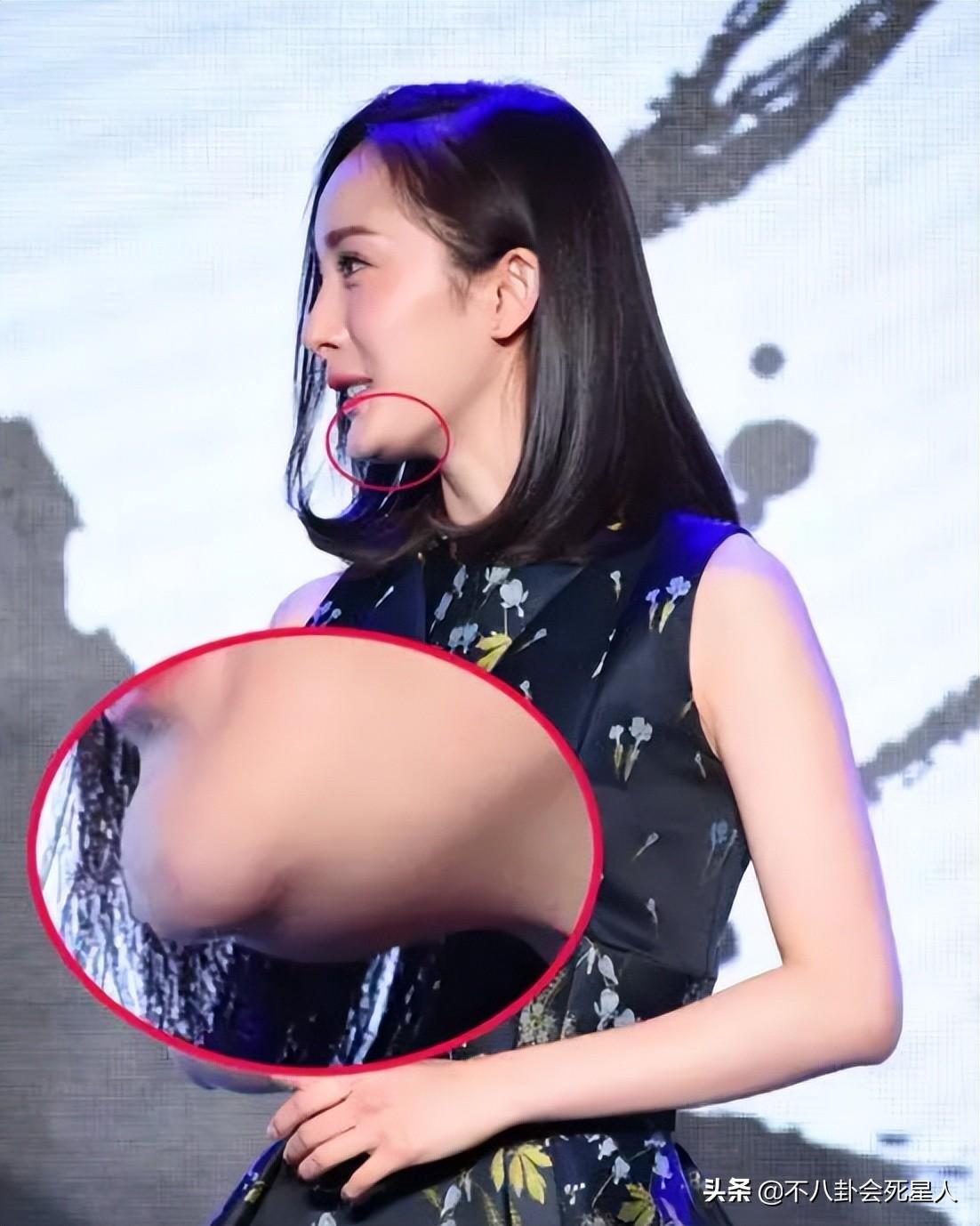 時間久了,楊冪臉上的各種問題都跟著凸顯了:頜面失去線條,頸紋、雙下巴。楊冪明明很瘦,但她的下巴上總是會有一坨肉,比身材圓潤的人的雙下巴還要嚴重。
