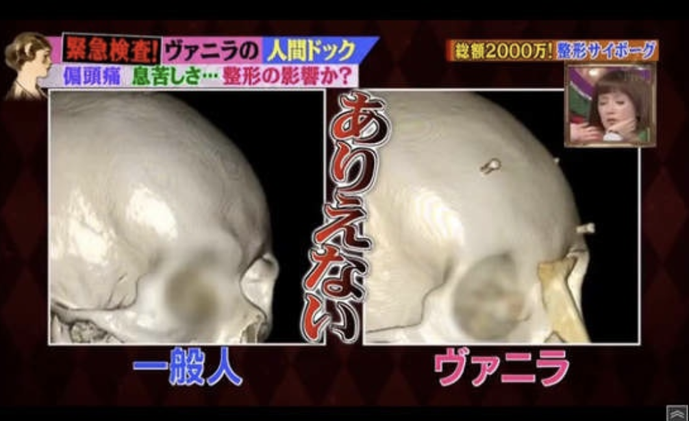 Vanilla她先是把眼睛整成比常人大、還透過玻尿酸做出假眼袋,為的就是一雙“水汪汪大眼”,此外她也透過手術(shù),切開后腦勺在額頭裝入人工骨頭,手術(shù)進(jìn)行6小時,為的是擁有像外國人一樣的額頭形狀,讓眼睛、鼻子更協(xié)調(diào)。
