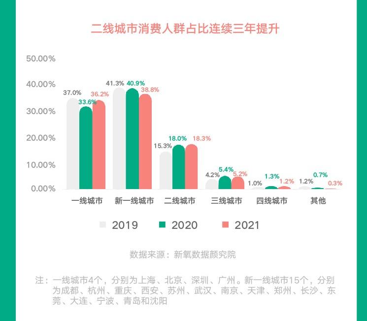 一線、新一線城市是醫(yī)美消費(fèi)主戰(zhàn)場(chǎng),醫(yī)美消費(fèi)人群占比70%以上,二線城市消費(fèi)人群數(shù)量近三年來(lái)持續(xù)增長(zhǎng),至2021年,這一群體比例已經(jīng)達(dá)到18.33%,與一線、新一線城市呈現(xiàn)三足鼎立之勢(shì)。未來(lái),二線城市有望成為醫(yī)美市場(chǎng)新的增長(zhǎng)極。