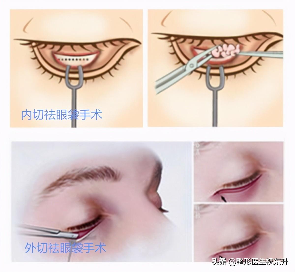 臨床上,祛眼袋手術(shù)有兩種:內(nèi)切祛眼袋手術(shù)和外切祛眼袋手術(shù)。