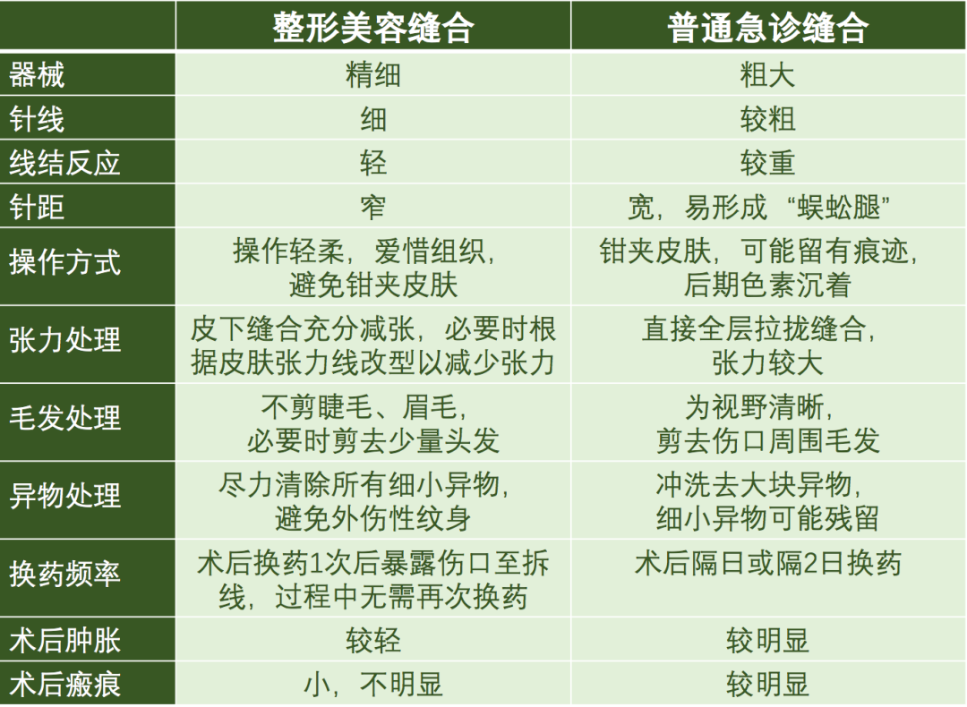 普通急診縫合更注重效率,醫(yī)生會(huì)在第一時(shí)間閉合傷口,避免污染,盡可能恢復(fù)功能,而外觀通常不是首要考慮的。