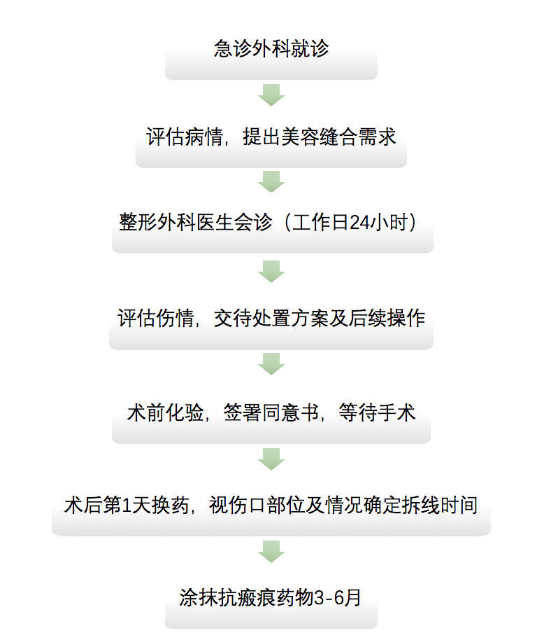 注:由于醫(yī)院暫無(wú)兒外科,兒童美容縫合需要于整形外科工作日門(mén)診掛號(hào)進(jìn)行評(píng)估。