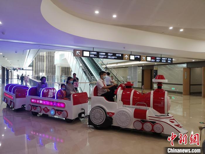 醫(yī)院在兒科門診配套了導(dǎo)診小火車,將看診流程設(shè)置成游戲沖關(guān),讓孩子們在游戲中看病,增加看診樂趣。 唐小晴 攝